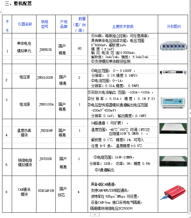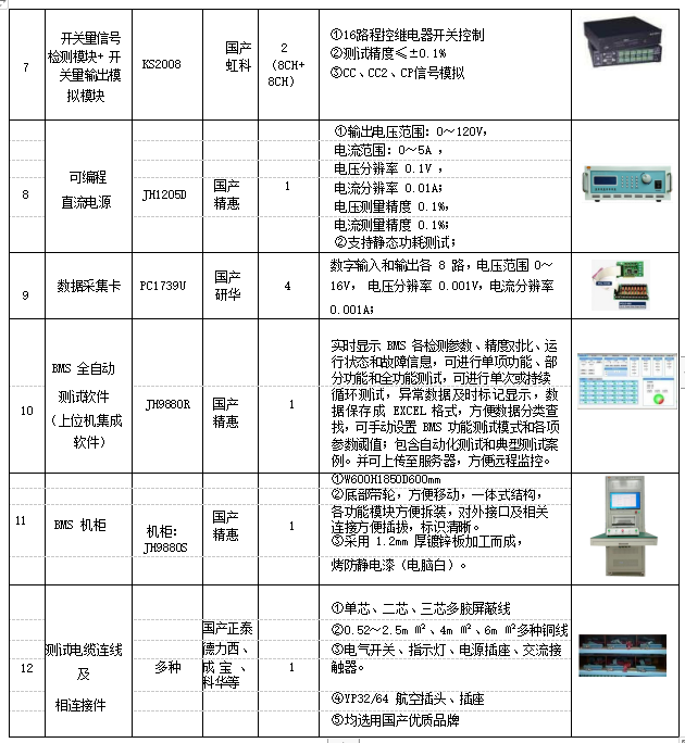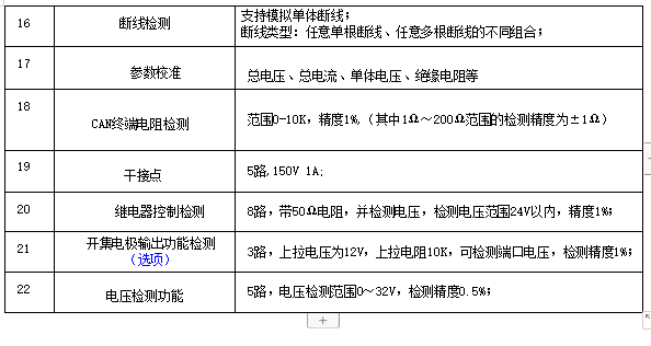 一、應(yīng)用范圍  JH8824A-24串電池壓差/內(nèi)阻測試儀適用于對已組合的1--24串電池組進(jìn)行復(fù)查是否配對正確。對鋰電、鎳氫電池組等進(jìn)行測試。通過掃描條形碼,被測電池組數(shù)據(jù)進(jìn)行存儲、溯源。 1、結(jié)構(gòu)尺寸 儀器本身體積317 *260*135mm,凈重4.3KG。 2、工作環(huán)境 工作電源要求市電AC220V輸入,電源波動范圍(170-260V),工作環(huán)境溫度-10°C到40°C,工作濕度在10%~90%.最大功率100W只有測試大電流情況下出現(xiàn)。   二、主要技術(shù)參數(shù) 1、測試項(xiàng)目及范圍      單體電壓     0.000V------5.000V        精度     1mV      總體電壓     5.00V-----100.00V         精度     10mV   單體內(nèi)阻     0.0 m? -----50 m?       精度     0.1 m?   總體內(nèi)阻     0 m? -----1000 m?       精度     1 m? 2.參數(shù)設(shè)定 1. 單節(jié)電壓(單節(jié)電池電壓上下限值) 2. 單節(jié)內(nèi)阻(單節(jié)電池內(nèi)阻上下限值) 3. 總電壓  (電池組總電壓上下限值) 4. 總內(nèi)阻  (電池組總內(nèi)阻上下限值) 5. 電壓差  (各單節(jié)電池之間電壓差值范圍) 6. 內(nèi)阻差  (各單節(jié)電池之間內(nèi)阻差值范圍)   3.測試過程 1、 表筆接線(表筆接線部分可根據(jù)客戶的組合電池輸出端口進(jìn)行更改),內(nèi)阻測試采用標(biāo)準(zhǔn)的四線采集法進(jìn)行測試,保證了測試的精度。 2、儀器要求連接電腦使用,電腦硬件配置要求一般辦公用電腦即可,系統(tǒng)一般要求XP系統(tǒng),儀器和電腦采用工業(yè)標(biāo)準(zhǔn)的232接口(電腦由客戶自備)。 三、工作條件 1、電源輸入:AC220V±20% 2、溫度:-10℃~40℃    濕度:≤90% 3、無振動、無磁場干擾。 三、標(biāo)準(zhǔn)配件 1、測試儀器主機(jī)一臺 2、測試筆夾具一套 3、電源線一根 4、軟件一套